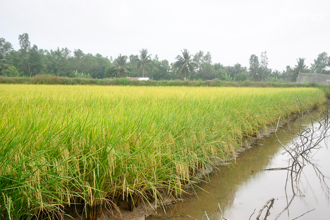Vừa cấy mạ xong trên nền đất lúa-tôm, ông Trần Đức Bằng, xã Đông Hòa chia sẻ: Những năm gần đây, nhờ áp dụng mô hình sản xuất xen canh tôm sú, tôm thẻ, tôm càng xanh kết hợp với sản xuất một vụ lúa theo quy trình sản xuất lúa hữu cơ cho năng suất, sản lượng khá cao và đầu ra ổn định hơn. Với việc sản xuất theo quy trình VietGAP nên lúa của nông dân vùng này thường được thương lái thu mua cao hơn giá thị trường khoảng 200 đồng/kg, đồng thời do ít sử dụng phân bón, thuốc trừ sâu nên chi phí dưới 20 triệu đồng/ha, lợi nhuận hơn 30 triệu đồng/ha, tăng gấp rưỡi so với biện pháp sản xuất truyền thống trước đây.