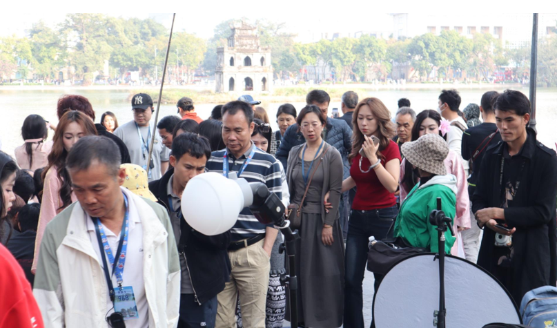 Rời không gian di sản, theo dòng người đổ về trung tâm thành phố, không khí cận Tết hiện rõ hơn quanh khu vực hồ Gươm. Những ngày này, người dân và du khách tản bộ, chụp ảnh, tận hưởng nhịp sống chậm lại trước thềm năm mới. Trong dòng người qua lại, áo dài Tết sớm tiếp tục xuất hiện như một phần quen thuộc của không gian phố phường những ngày cuối năm, tạo điểm nhấn nhẹ nhàng giữa nhịp sống đô thị.