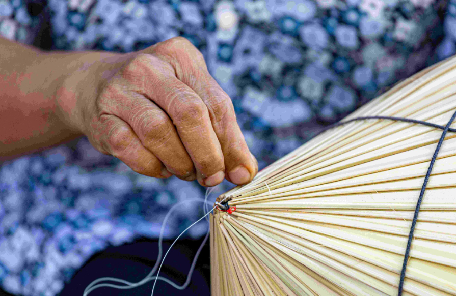 Những đôi bàn tay tỉ mỉ, cận thận khâu từng đường kim, mũi chỉ trên nón.
