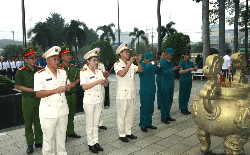 Lực lượng vũ trang, đoàn viên thanh niên dâng hương tưởng niệm.