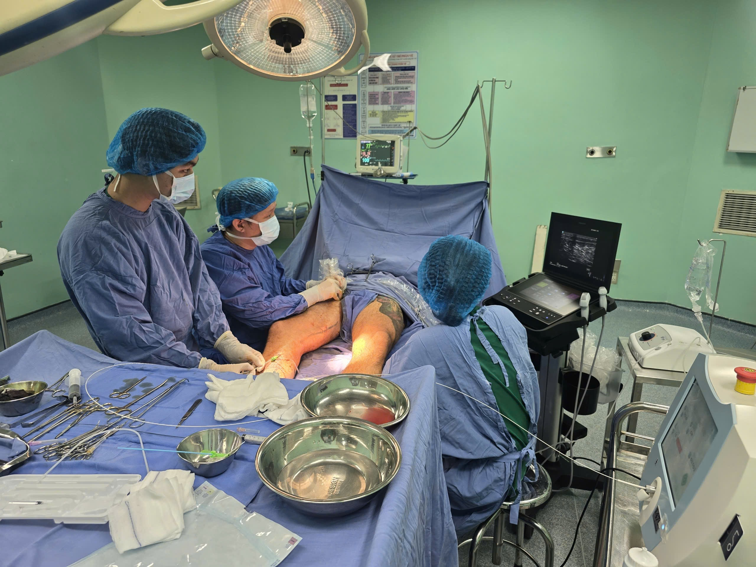 Ca can thiệp được thực hiện bởi ê-kíp gồm bác sĩ Đặng Nguyên Hoàng (phẫu thuật viên chính), bác sĩ Lê Hoàng Văn (phụ mổ) và dụng cụ viên Nguyễn Anh Phương. Thủ thuật diễn ra nhẹ nhàng trong khoảng 60 phút, bệnh nhân được gây tê tủy sống nên hầu như không cảm thấy khó chịu.