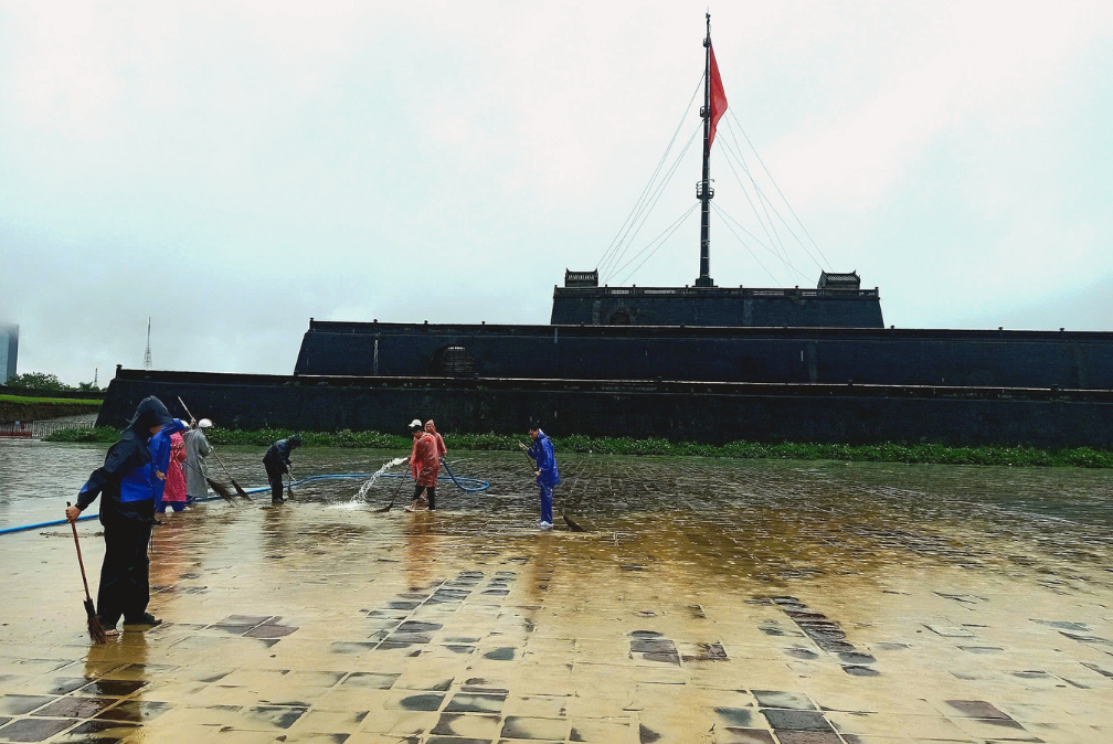 Công tác vệ sinh môi trường tại Kinh thành Huế được triển khai khẩn trương. (Ảnh: BT).