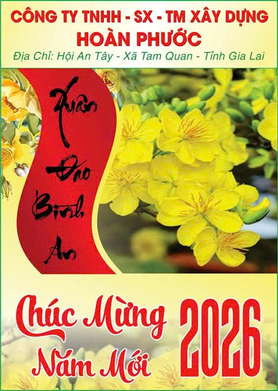 Nhân dịp Tết Bính Ngọ 2026 đang về, Công ty TNHH Sản xuất Thương mại Xây dựng Hoàn Phước (thôn Hội An Tây, phường Tam Quan, tỉnh Gia Lai) xin gửi lời chúc An khang, Thịnh vượng,Vạn sự như ý.