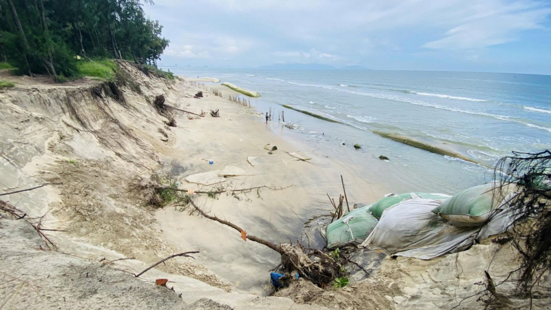 Mới đây nhất, vào chiều 19/10, thông tin từ lãnh đạo UBND phường Hội An Tây (Đà Nẵng, những ngày qua, tại khối phố Tân Thành (phường Hội An Tây), sóng lớn liên tục đánh mạnh vào bờ khiến một đoạn bờ biển dài hơn 200m bị sạt sâu, tạo vách đứng cao từ 5 đến 6m, sát ngay khu dân cư và các cơ sở du lịch ven biển.