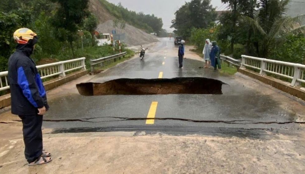 Cụ thể, vào chiều 26/10, trên tuyến Quốc lộ 24C đoạn qua thôn Sông Y (xã Trà Tân, TP. Đà Nẵng) đã xảy ra sự cố sập mố cầu Ca Da, tạo thành một “hố tử thần” sâu khoảng 3m, rộng hơn 2m, khiến giao thông qua khu vực bị chia cắt.