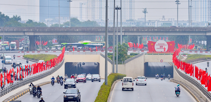 Đường phố Hà Nội rực rỡ cờ hoa chào mừng Đại hội Đảng toàn quốc lần thứ XIV.