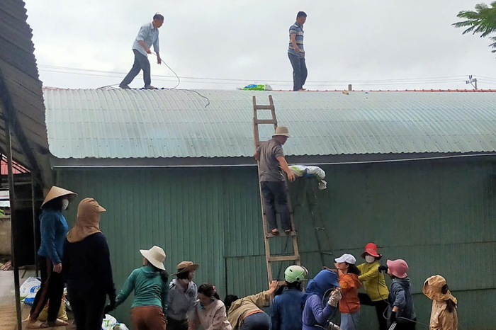 Người dân chằng chống nhà cửa trước khi bão đổ bộ. Ảnh: NM