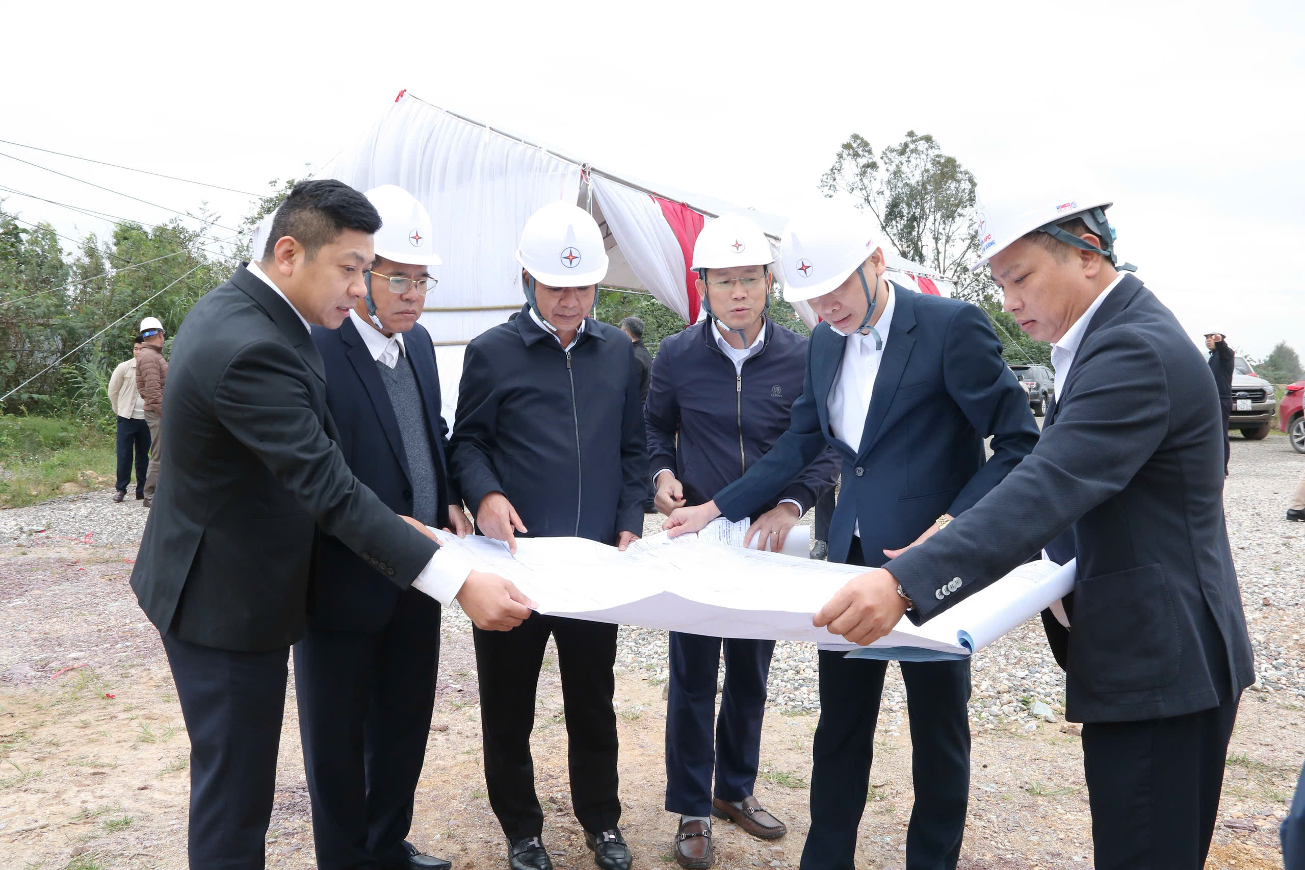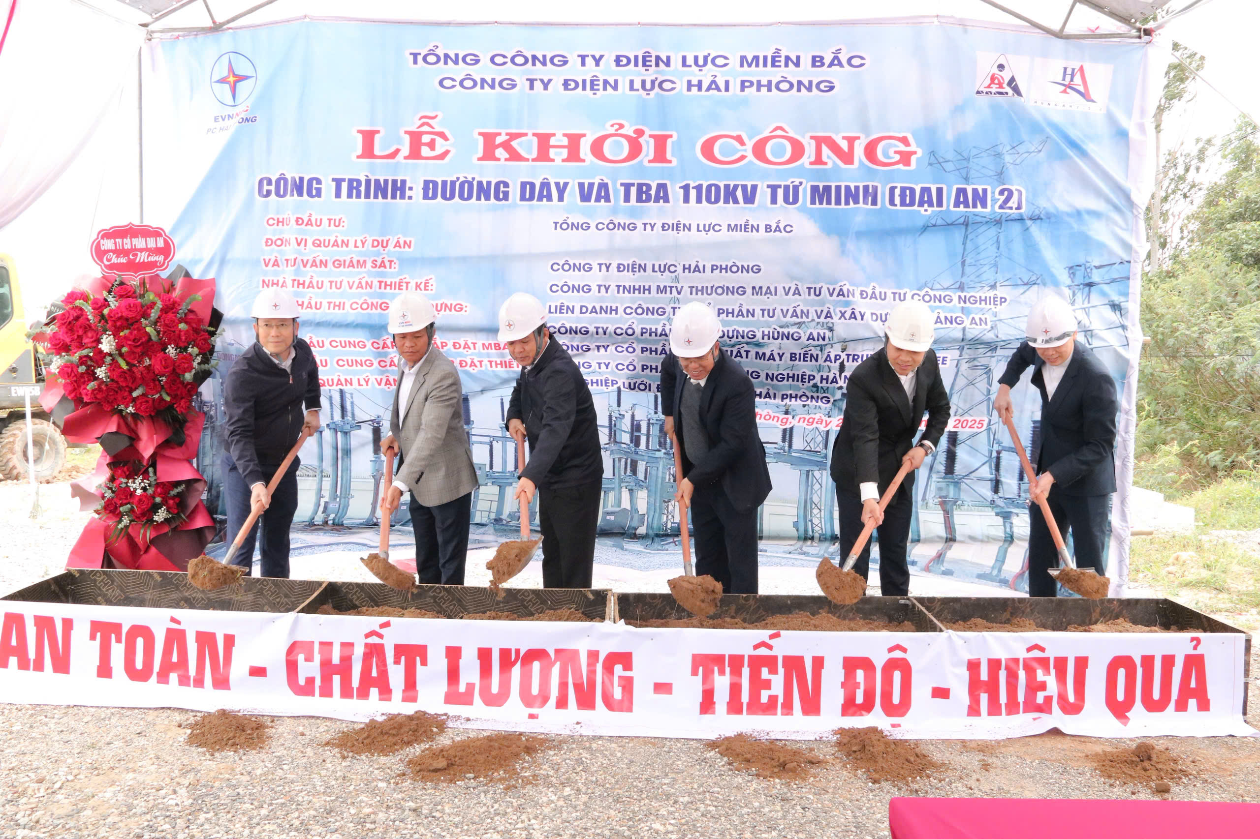 Ông Nguyễn Hữu Hưởng – Bí thư Đảng ủy, Giám đốc Công ty Điện lực Hải Phòng cùng các đại biểu thực hiện nghi thức khởi công công trình đường dây và trạm biến áp 110kV Tứ Minh (Đại An 2).