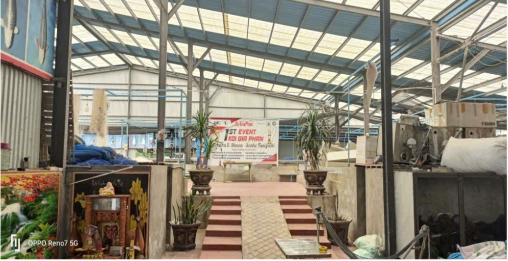 Hồ nuôi cá koi khép kín trong trang trại.