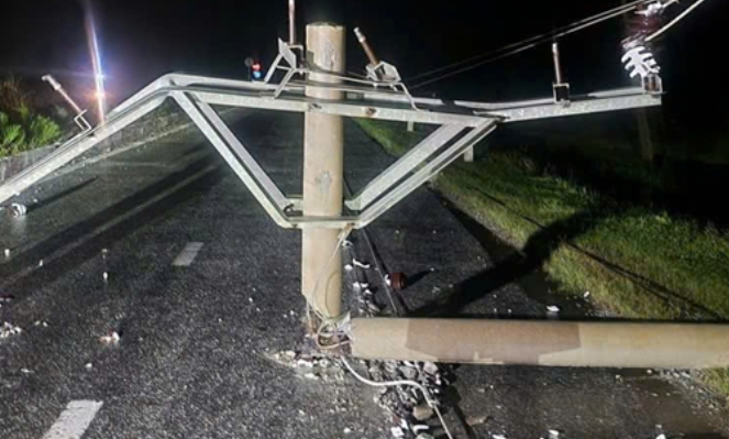 Nhiều cột điện bị gãy đổ. (Ảnh: QĐND).