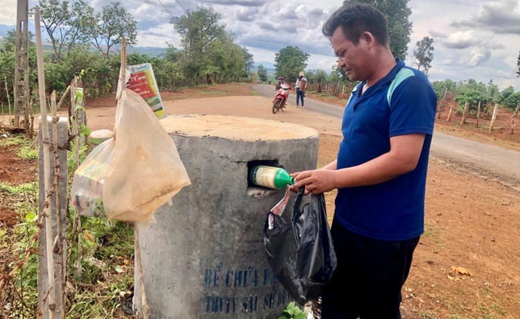 Cùng với sự phát triển sản xuất là lượng lớn bao bì thuốc bảo vệ thực vật thải ra mỗi năm. Trước đây, nông dân thường vứt bao bì lại vườn hoặc đốt, gây ô nhiễm đất và không khí. Để giải quyết, xã đã phối hợp Phòng Kinh tế xã lắp đặt 100 điểm thu gom bao bì thuốc bảo vệ thực vật tại các vùng sản xuất chính.