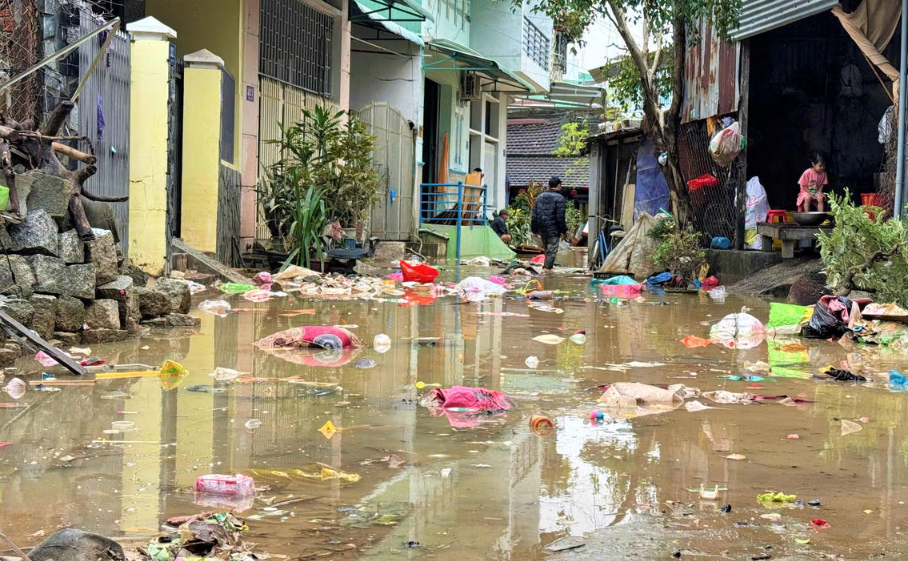 Tại xã Tuy Phước - nơi chịu ảnh hưởng nặng nề, sau 3 ngày lũ dữ càn quét, đến nay, nhiều khu vực nước vẫn chưa kịp rút hết. Tại những khu vực nước đã rút vẫn ngổn ngang rác thải, bùn đất.