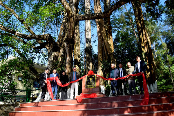 Các đại biểu thực hiện nghi thức mở văn bia Cây Di sản Việt Nam.