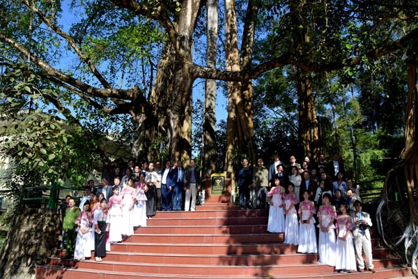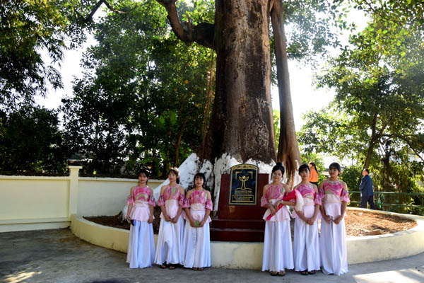 Người dân địa phương chụp ảnh lưu niệm tại gốc Cây Di sản.
