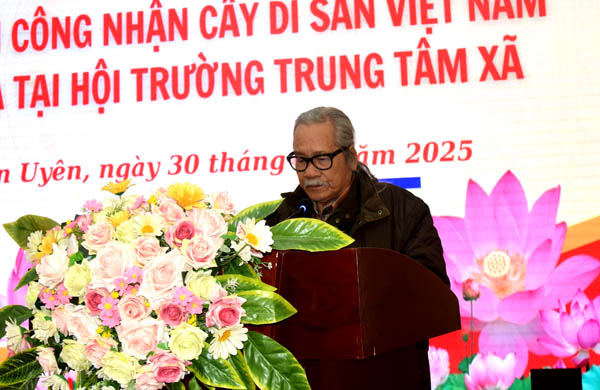 Ông Lê Huy Cường, Trưởng ban Kỹ thuật Hội đồng Cây Di sản Việt Nam công bố Quyết định Công nhận Cây Di sản Việt Nam.