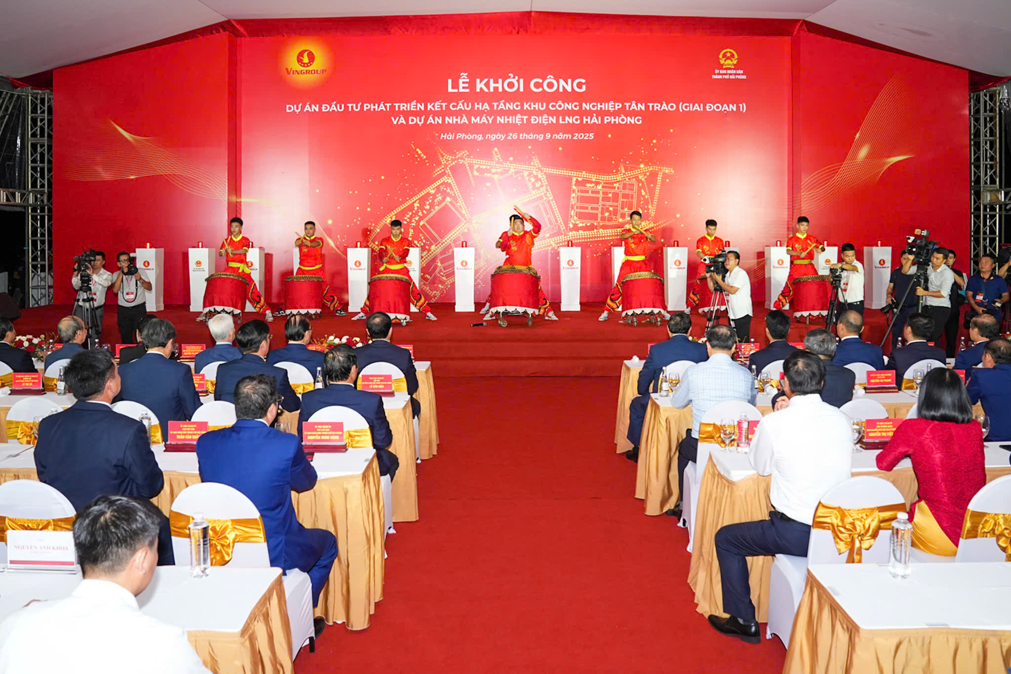 TMO - Tối 26/9, tại xã Kiến Hưng, UBND thành phố Hải Phòng phối hợp với Tập đoàn Vingroup tổ chức lễ khởi công đồng thời 2 dự án trọng điểm, đó là Dự án đầu tư phát triển kết cấu hạ tầng Khu Công nghiệp Tân Trào (giai đoạn 1) và Dự án Nhà máy Nhiệt điện LNG Hải Phòng.