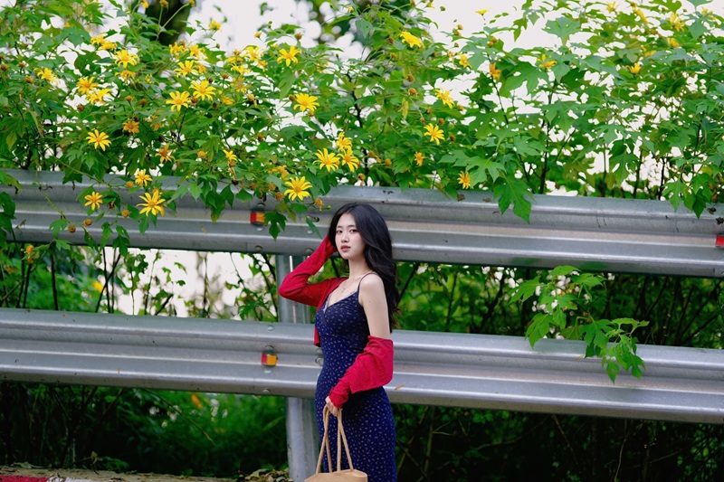 Qua cổng kiểm soát vé, du khách sẽ được trải nghiệm qua những khúc cua uốn lượn, quan sát cảnh quan thiên nhiên và những dải hoa dã quỳ vàng rực hai bên đường.