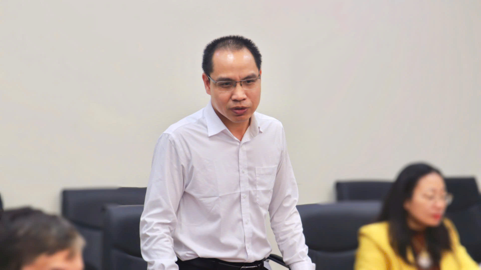 TS. Nguyễn Đình Đáp, Viện Hàn lâm Khoa học Xã hội Việt Nam, trình bày giải pháp công nghệ và quản lý vận hành tại hội thảo.