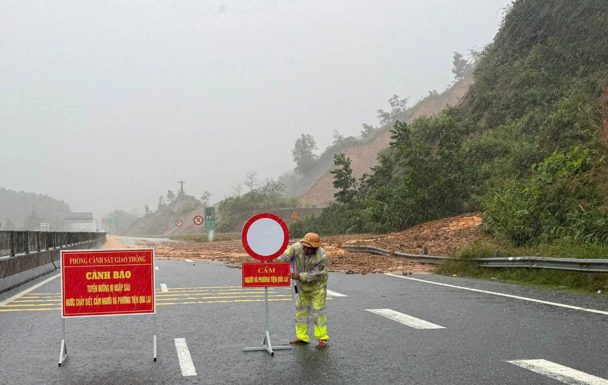 Cao tốc La Sơn - Túy Loan nhiều điểm bị sạt lở nghiêm trọng. (Ảnh: BT).