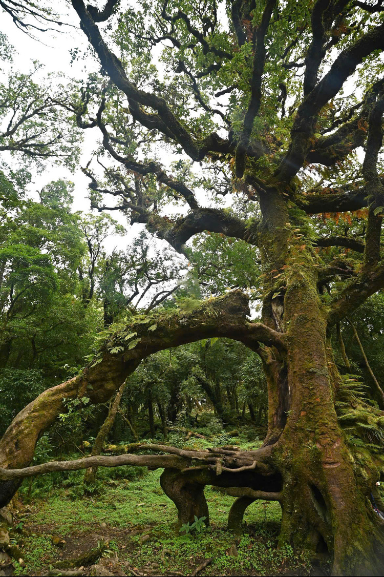 Giữa rừng nguyên sinh, cây sa mu cổ thụ với rễ tỏa ra như chân của con nhện khổng lồ, tạo nên khung cảnh kỳ thú hiếm thấy.