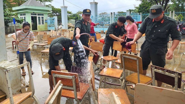 Các lực lượng khẩn trương dọn dẹp vệ sinh môi trường sau bão lũ (Ảnh: VT).