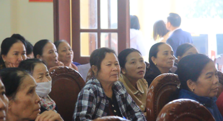 Phụ nữ và nông dân trong xã Khánh Trung (Ninh Bình) tại một lớp tập huấn về môi trường được tổ chức.