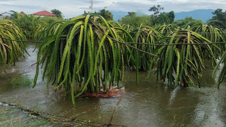 Nhiều diện tích cây trồng trên địa bàn tỉnh bị ngập do mưa lớn.