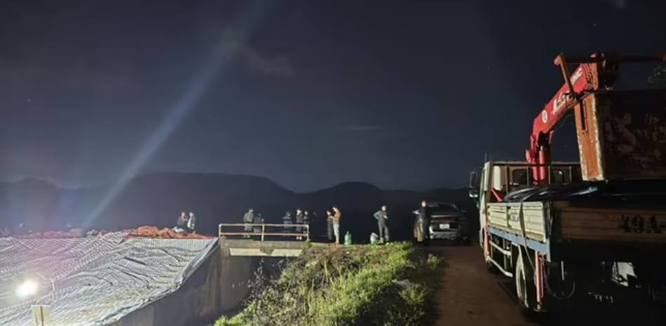 Lực lượng chức năng khẩn trương kiểm tra, đảm bảo an toàn tại hồ thuỷ lợi Cay An. (Ảnh: HN).