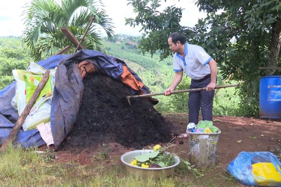 Tại xã Đức An, nhiều hộ dân phân loại, tận dụng rác thải để ủ phân bón.