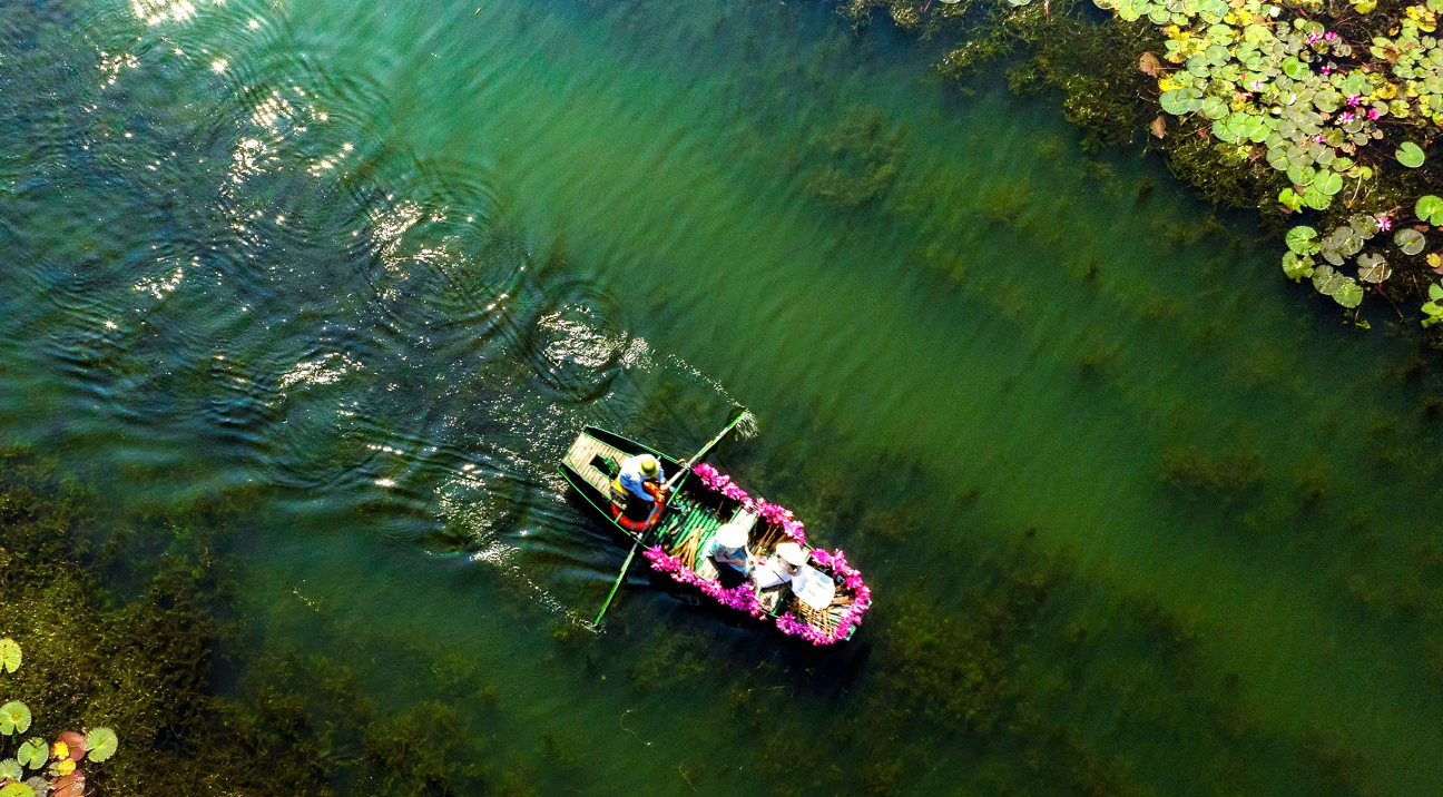 Ở Tràng An hay Tam Cốc, những người lái đò không chỉ là người đưa khách tham quan mà còn là “người kể chuyện” về vùng đất. Họ chia sẻ rằng, hoa súng thường nở rộ từ tháng 9 đến tháng 12 hằng năm, khi thời tiết mát mẻ, nước trong và tĩnh lặng. Mỗi buổi sáng, người dân địa phương lại chèo thuyền hái hoa súng để bán, vừa tạo thu nhập, vừa gìn giữ cảnh quan tự nhiên.