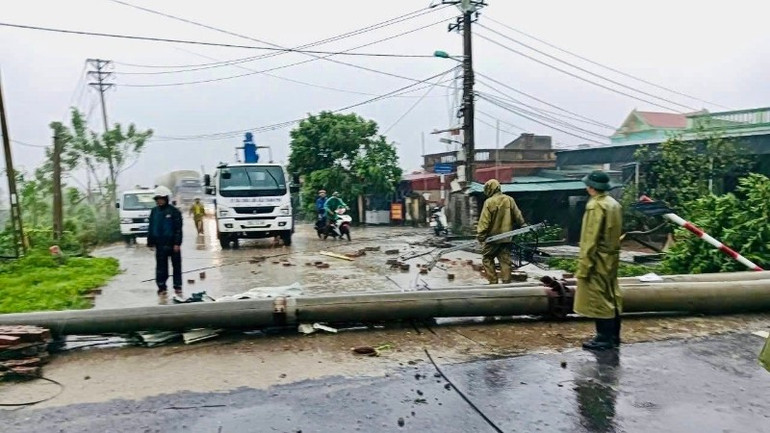 Tại nhiều địa phương trên địa bàn tỉnh, gió giật mạnh làm gãy đổ nhiều cột điện.