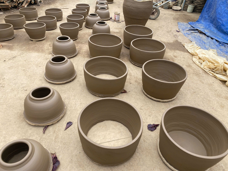 Tùy thuộc vào từng loại sản phẩm mà người thợ gốm sẽ nặn đất theo các mẫu khác nhau. Ví dụ như để làm ra những chiếc vò, chum, vại..., người thợ sẽ cắt đất thành những thớ dài và tròn, để khi đưa lên bàn xoay ghép lại với nhau được dễ dàng, thuận tiện trong khâu tạo hình sản phẩm.