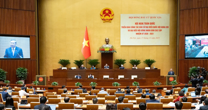 TMO – Sáng nay 15/11, tại Hội trường Diên Hồng, Nhà Quốc hội, Hội đồng Bầu cử quốc gia tổ chức Hội nghị toàn quốc triển khai công tác bầu cử đại biểu Quốc hội khóa XVI và đại biểu Hội đồng nhân dân các cấp nhiệm kỳ 2026-2031. Tạp chí điện tử Thiên nhiên và Môi trường trân trọng giới thiệu toàn văn bài phát biểu của Tổng Bí Thư Tô Lâm tại hội nghị.