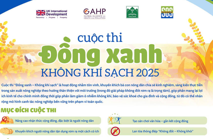 Được biết, “Đồng xanh – Không khí sạch” là hoạt động thuộc Dự án “Đánh giá hiện trạng và đề xuất các giải pháp giảm thiểu tác động của đốt lộ thiên và sử dụng hóa chất bảo vệ thực vật trong nông nghiệp đến biến đổi khí hậu, sức khỏe con người và đa dạng sinh học ở Việt Nam” do Bộ Môi trường, Thực phẩm và Nông thôn Vương quốc Anh (DEFRA) tài trợ thông qua Liên minh Toàn cầu về Sức khỏe và Ô nhiễm (GAHP).
