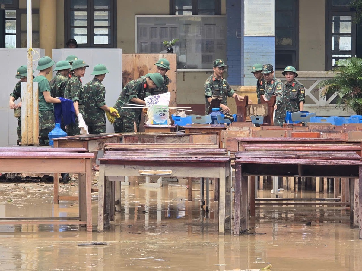 Lượng quân đội tỉnh tiếp tục hỗ trợ các địa phương khắc phục hậu thiên tai, nhất là các trường học, cơ sở y tế… để sớm ổn định đời sống nhân dân. Bên cạnh đó, phối hợp với các lực lượng tổ chức tổng dọn vệ sinh sau lũ để đảm bảo an toàn sức khỏe cho nhân dân.