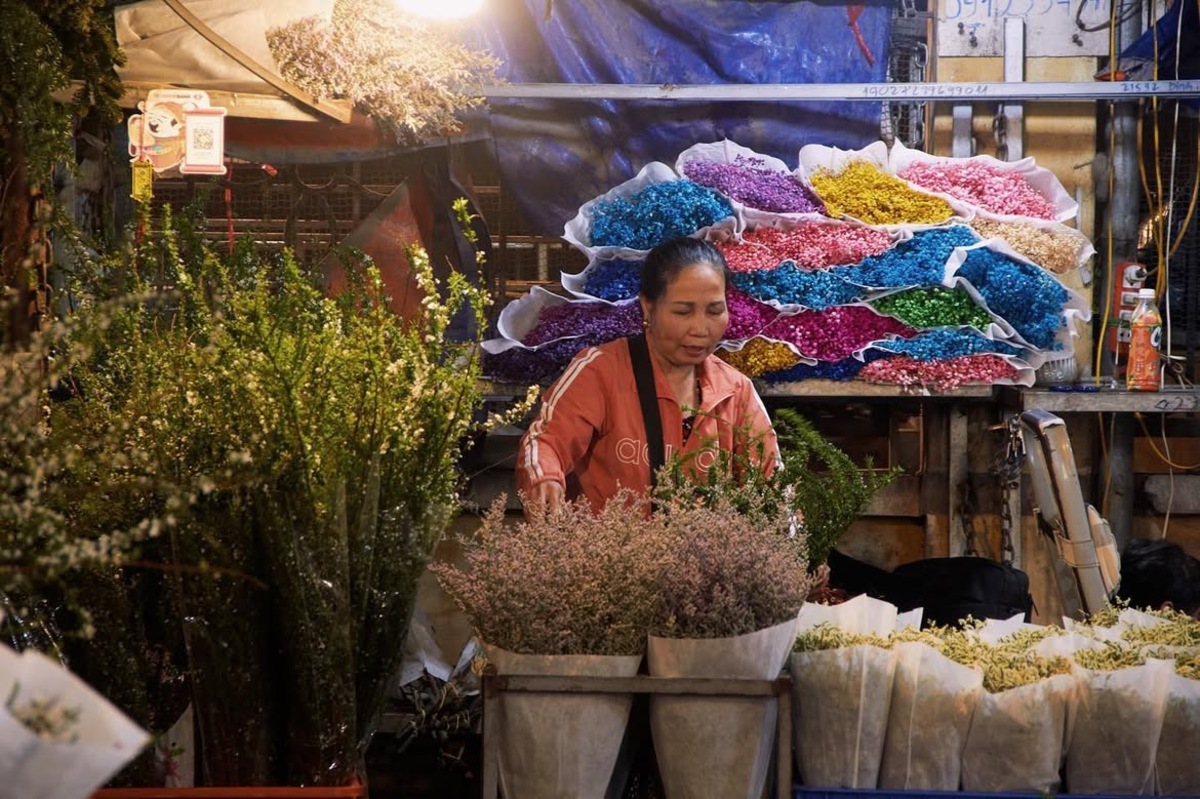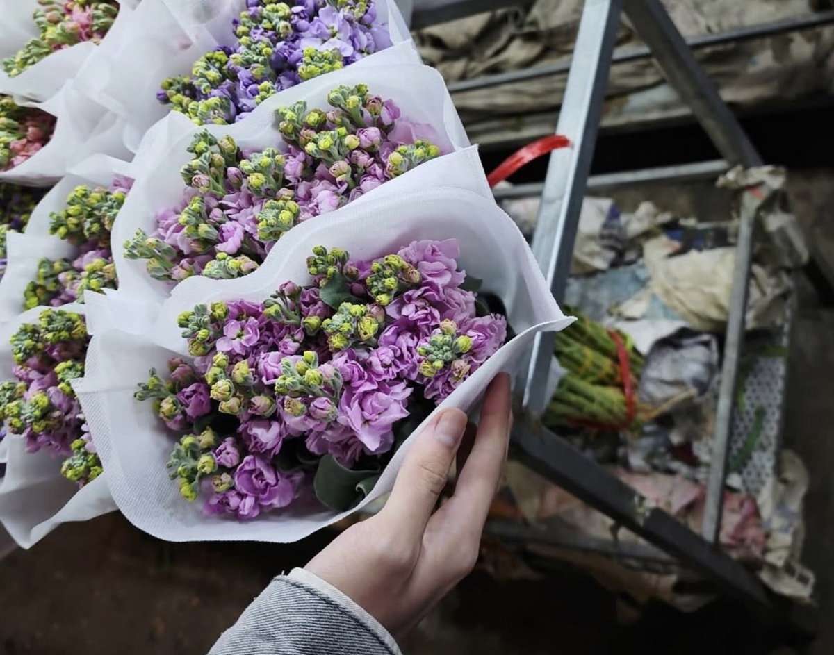 Tại chợ hoa Hà Đông, anh Đặng Tiến Linh (35 tuổi) tiểu thương bán hoa hơn 10 năm – cho biết hoa nội địa vẫn chiếm tới 70% lượng bán ra.“Khách năm nay chuộng kiểu gói phong cách Hàn Quốc, xen lẫn hoa baby trắng với hồng pastel. Ngoài ra, nhiều người chuyển sang chọn hoa len, hoa sáp để trưng được lâu, tránh lãng phí khi thời tiết nồm ẩm,” anh Đông nói trong lúc tay vẫn thoăn thoắt cắt cuống hoa.