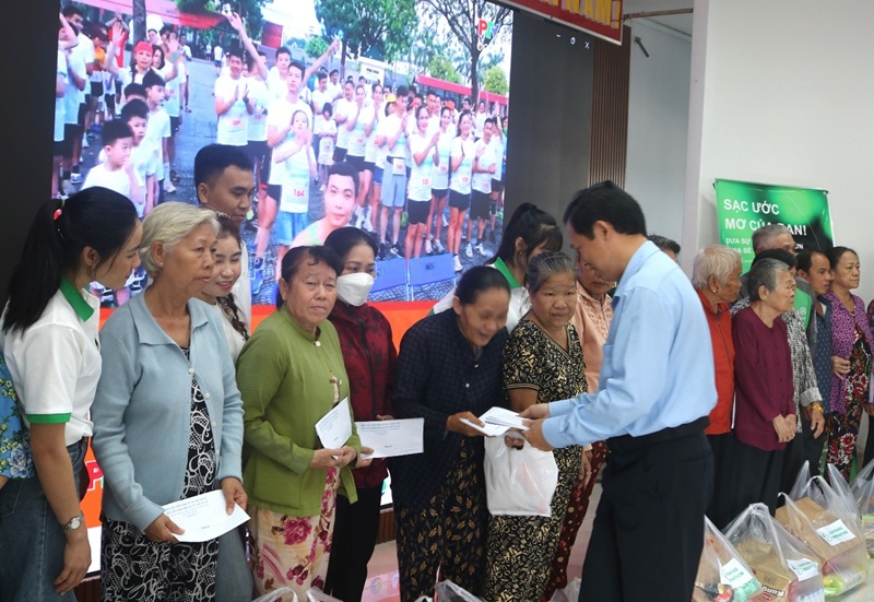 Tặng quà cho gia đình chính sách, hộ nghèo, khó khăn trên địa bàn.