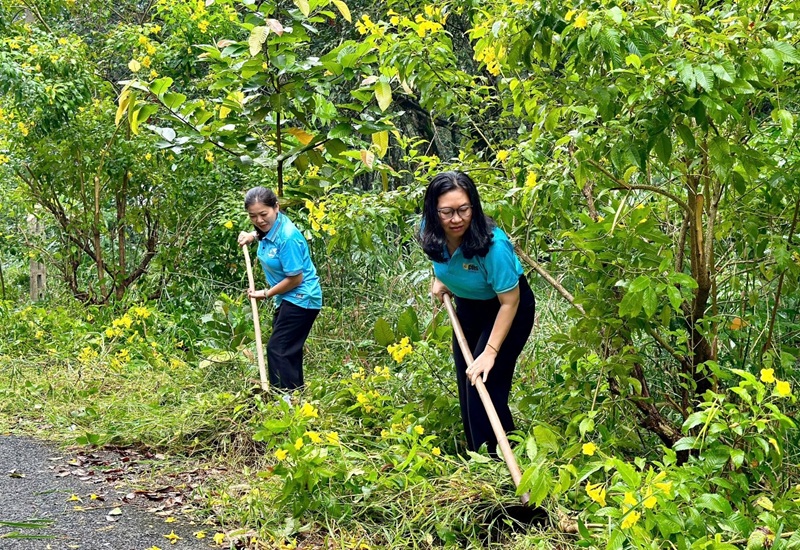 Cán bộ, đảng viên, lực lượng vũ trang và Nhân dân xã Phước Hòa ra quân dọn dẹp vệ sinh sau Lễ phát động.