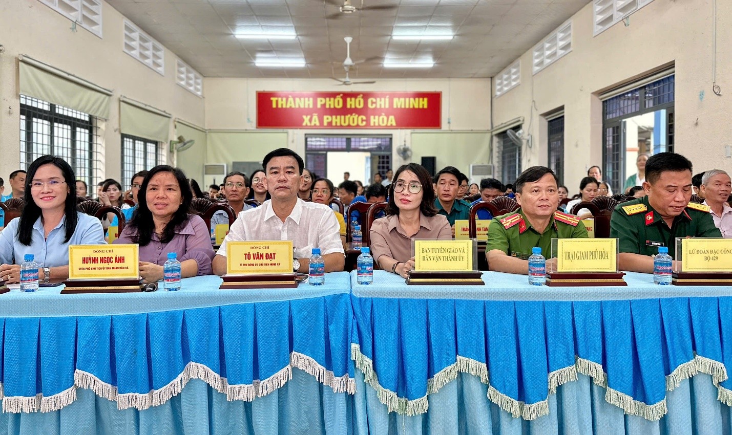 Tham dự buổi lễ có đại diện lãnh đạo Ban Tuyên giáo và Dân vận Thành ủy TP. HCM. Về phía xã Phước Hòa có ông Tô Văn Đạt – Bí thư Đảng ủy, Chủ tịch HĐND xã; bà Võ Châu Loan – Phó Bí thư Thường trực Đảng ủy; bà Trần Hồng Dung – Phó Bí thư, Chủ tịch UBND xã... cùng các đồng chí trong Ban Thường vụ, Ban Chấp hành Đảng ủy xã; đại diện các đơn vị lực lượng vũ trang đóng trên địa bàn, cùng hơn 200 cán bộ, đảng viên, đoàn viên, hội viên và Nhân dân địa phương.