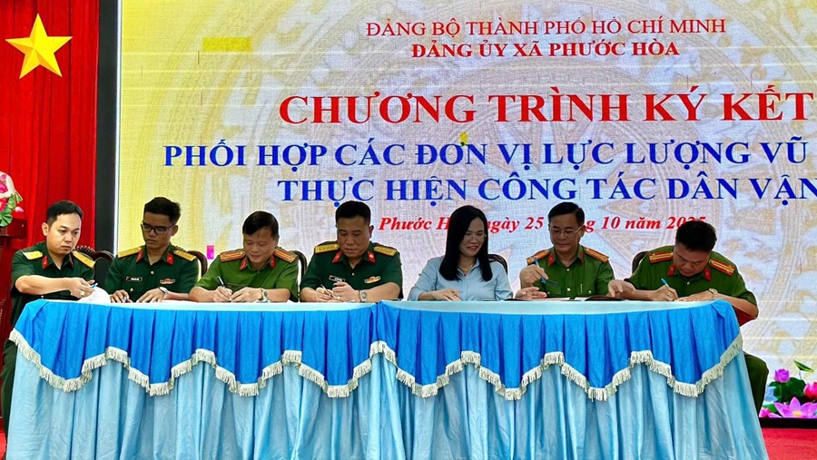 Tại Lễ phát động, Đảng ủy xã Phước Hòa đã ký kết kế hoạch phối hợp công tác dân vận năm 2025 với sáu đơn vị lực lượng vũ trang trú đóng trên địa bàn, nhằm phát huy sức mạnh tổng hợp trong xây dựng quốc phòng – an ninh, phát triển kinh tế – xã hội và giữ vững ổn định chính trị ở cơ sở. Đại diện lãnh đạo Ban Tuyên giáo và Dân vận Thành ủy cùng ông Tô Văn Đạt – Bí thư Đảng ủy, Chủ tịch HĐND xã đã chứng kiến lễ ký kết.