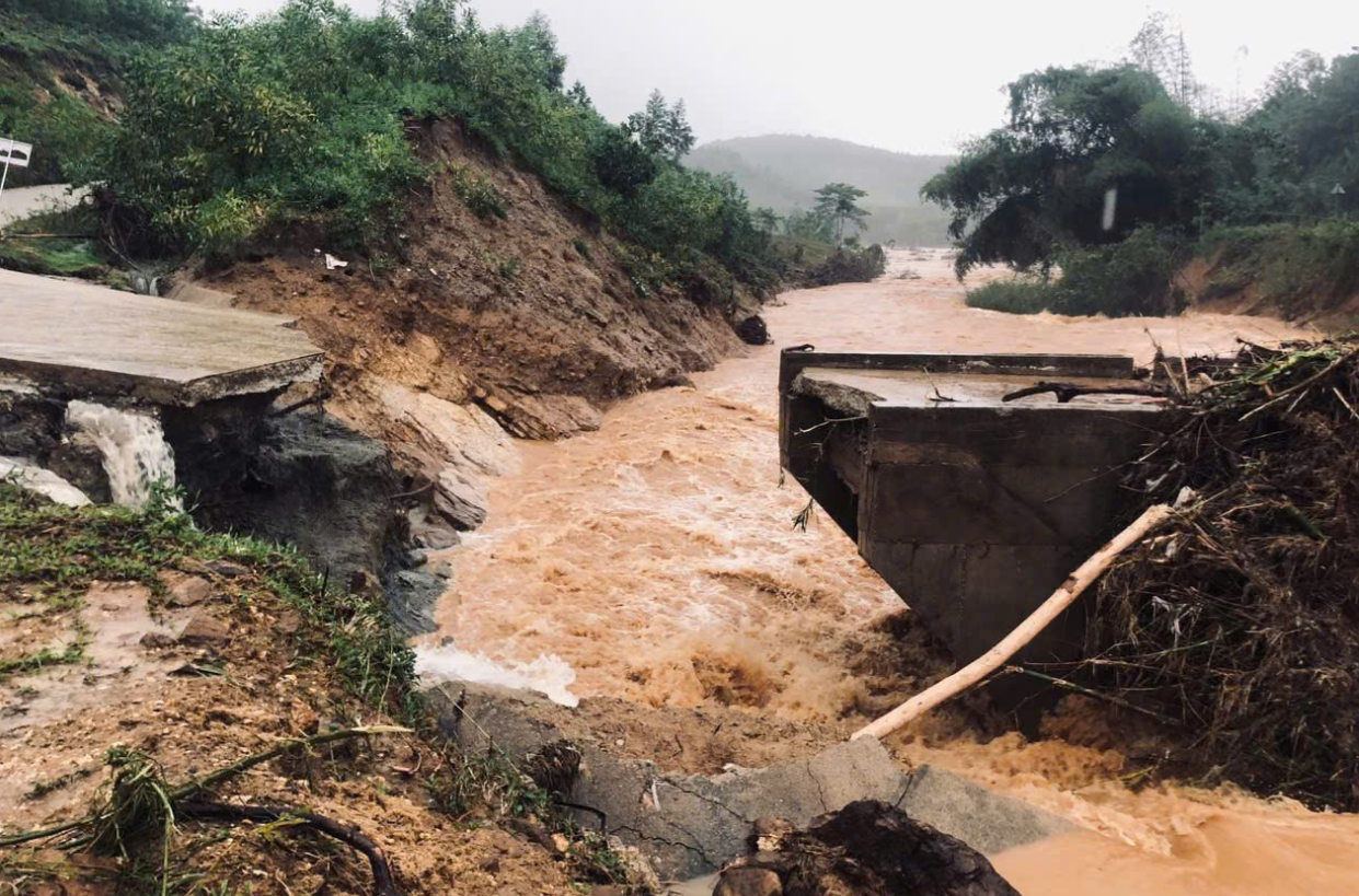Theo lãnh đạo xã Sơn Hà, mưa lớn làm nước suối Nước Bao dâng cao, chảy xiết, khiến mố cầu và một phần cầu Nước Bao bị gãy đôi và trôi. Dòng nước đục ngầu đổ về mạnh khiến giao thông bị chia cắt.