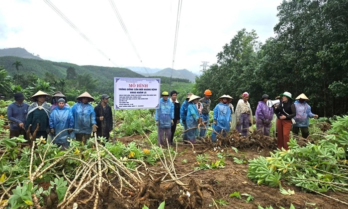 Năm 2025, Trung tâm Khuyến nông tỉnh Quảng Ngãi đã triển khai mô hình “Trồng giống sắn mới kháng bệnh virus khảm lá” với quy mô 13ha/03 xã (Trà Bồng, Sơn Mai và Ba Vì) với 18 hộ tham gia. Mô hình thí điểm được triển khai với quy mô: 2,0 - 6,0 ha/điểm; bước đầu đã khẳng định giống sắn HN5 tại 03 điểm đều có sức sinh trưởng khỏe, chống chịu sâu bệnh tốt khống thấy xuất hiện bệnh khảm lá, mật độ xuất hiện nhện đỏ, bọ phấn trắng ở mức độ thấp hơn rõ rệt so với các giống sắn người dân thường sử dụng.