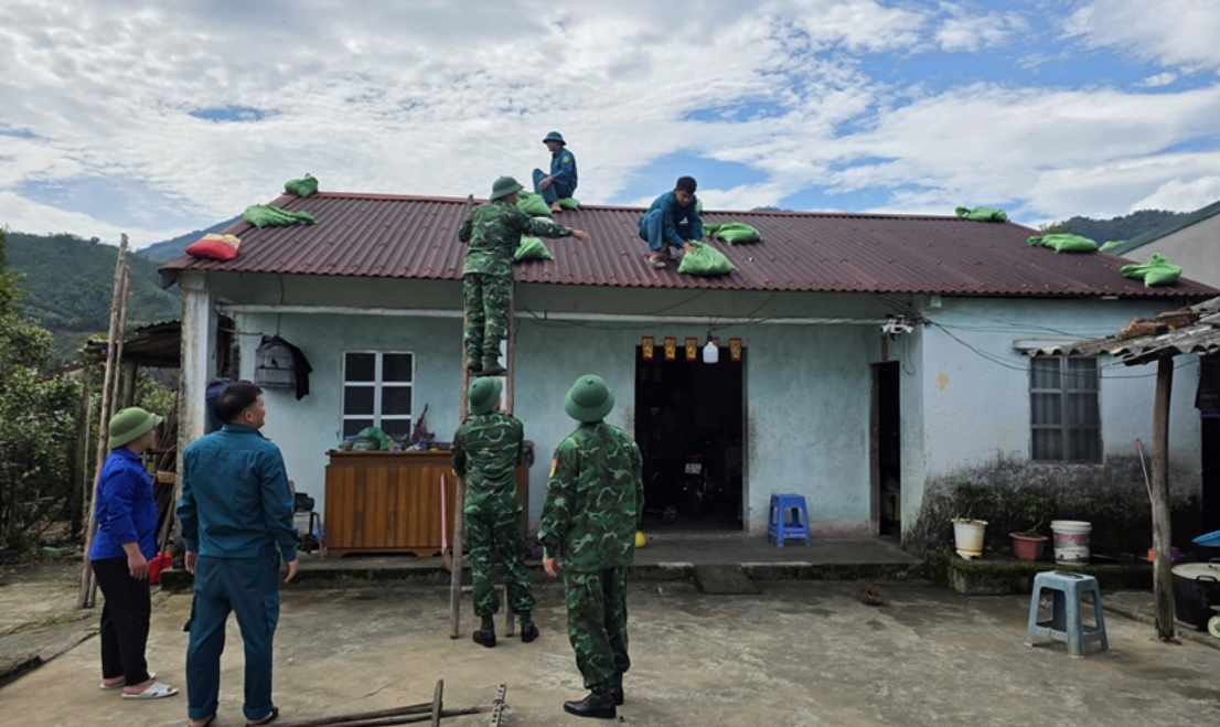 Lực lượng Biên phòng Quảng Ninh giúp người dân chằng chống, gia cố nhà cửa. (Ảnh: XH).