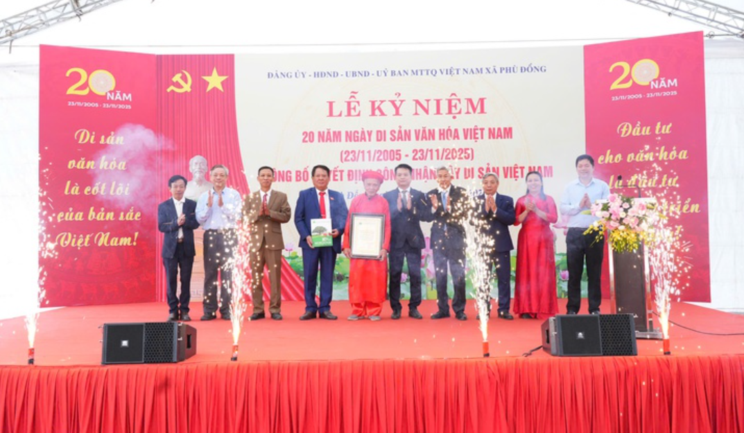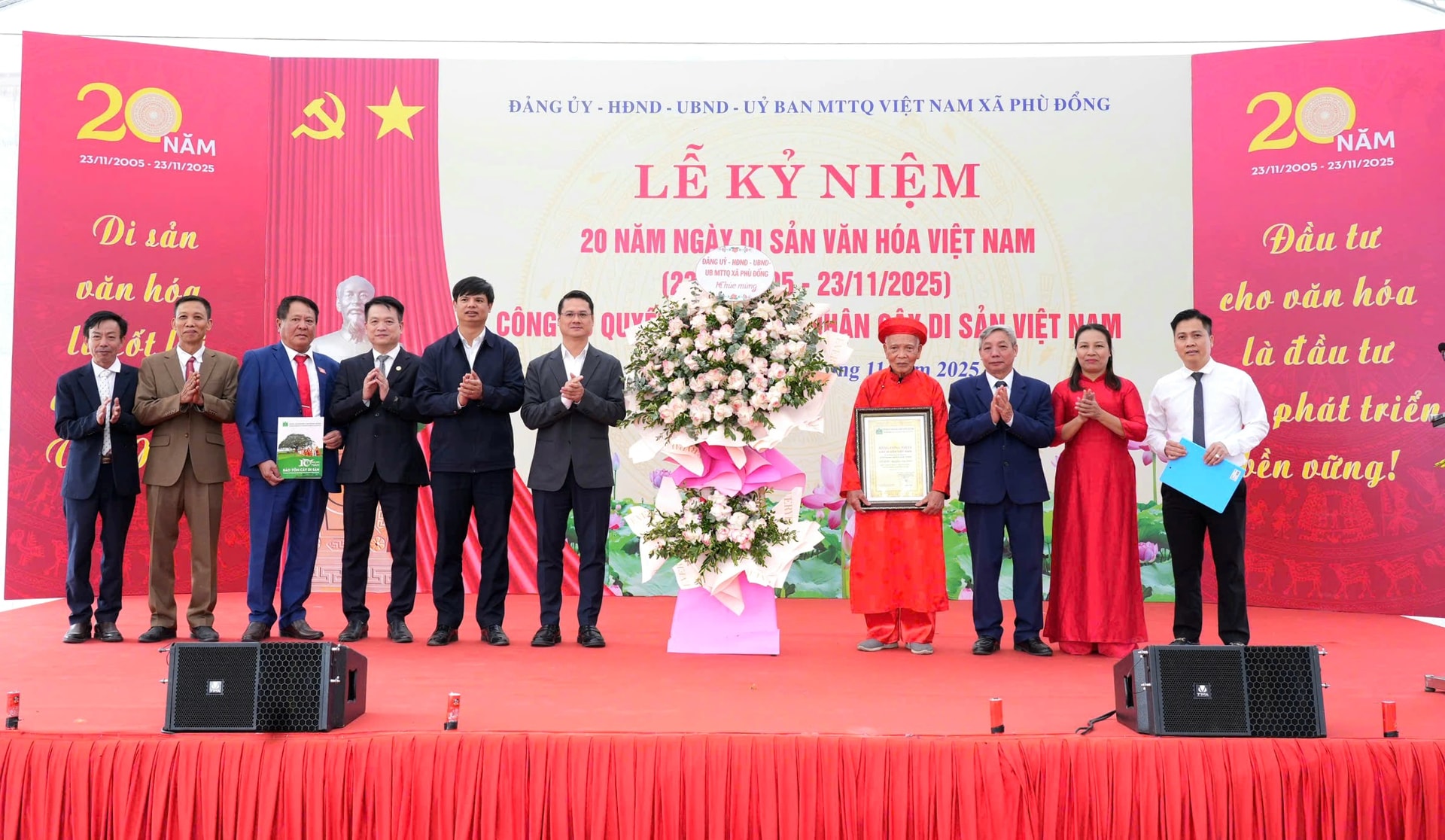 Phát biểu tại buổi lễ, Phó Chủ tịch UBND xã Phù Đổng cho biết, toàn xã hiện có 101 di tích lịch sử, văn hóa và 4 di tích cách mạng kháng chiến, trong đó có 59 di tích đã được xếp hạng các cấp (1 Khu di tích quốc gia đặc biệt đền Phù Đổng với 10 địa điểm, 19 di tích cấp quốc gia, 30 di tích cấp thành phố); 25 lễ hội truyền thống, nổi tiếng nhất là Hội Gióng đền Phù Đổng đã được UNESCO vinh danh là Di sản văn hóa phi vật thể đại diện của nhân loại vào năm 2010; Lễ hội chùa Nành được Bộ Văn hóa, Thể thao và Du lịch đưa vào danh mục Di sản văn hóa phi vật thể quốc gia tháng 6-2025.