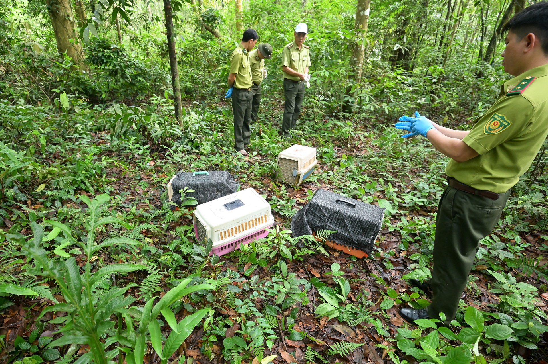 Lực lượng chức năng tái thả động vật hoang dã về môi trường tự nhiên. (Ảnh: BNN-MT).