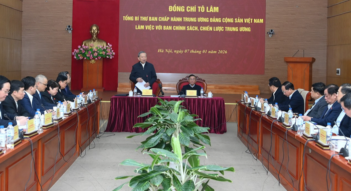 Ngày 7/1, phát biểu tại buổi làm việc với Ban Chính sách, chiến lược Trung ương về định hướng xây dựng 2 nghị quyết về đổi mới mô hình phát triển đất nước dựa trên khoa học, công nghệ, đổi mới sáng tạo và chuyển đổi số; về các giải pháp chiến lược để thúc đẩy tăng trưởng 2 con số gắn với xác lập mô hình tăng trưởng mới, Tổng Bí thư Tô Lâm nhấn mạnh, yêu cầu quan trọng và cấp bách của việc chuyển đổi mô hình phát triển đất nước dựa trên khoa học, công nghệ; và việc thực hiện mục tiêu tăng trưởng 2 con số gắn với xác lập mô hình tăng trưởng mới. Kết quả nghiên cứu bước đầu của Ban Chính sách, chiến lược Trung ương là khá toàn diện và đề xuất được những chủ trương, giải pháp lớn để thực hiện những yêu cầu này.