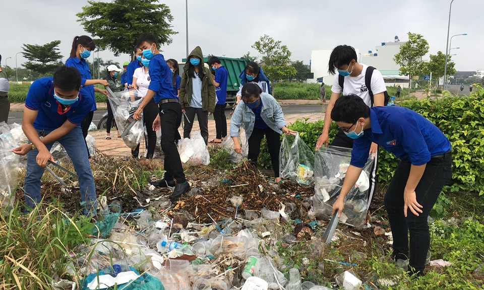 Đoàn viên, thanh niên tại các địa phương tích cực tham gia công tác thu gom rác thải trên địa bàn.
