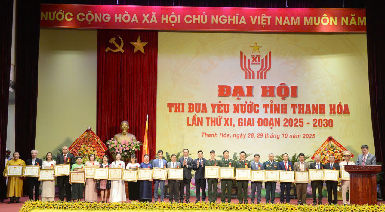 Sáng 29/10, tại Trung tâm Hội nghị 25B, phường Hạc Thành, tỉnh Thanh Hóa long trọng tổ chức Đại hội Thi đua yêu nước lần thứ XI, giai đoạn 2025-2030. Đại hội Thi đua yêu nước tỉnh Thanh Hóa lần thứ XI diễn ra trong không khí toàn Đảng, toàn dân, toàn quân đang ra sức thi đua lập nhiều thành tích chào mừng các ngày kỷ niệm trọng đại của đất nước, của tỉnh, đặc biệt là Đại hội Đảng bộ tỉnh Thanh Hóa lần thứ XX, hướng tới mục tiêu đến năm 2030 đưa Thanh Hóa trở thành tỉnh công nghiệp hiện đại, người dân có mức sống cao hơn bình quân chung của cả nước; giàu đẹp, văn minh, hiện đại, phát triển toàn diện vào năm 2045...