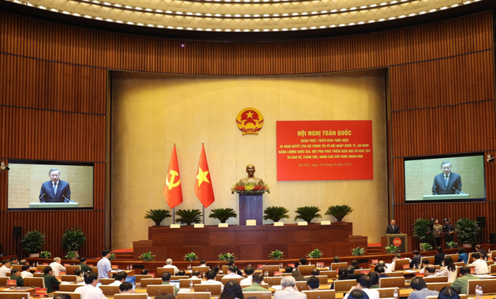 Hôm nay, Bộ Chính trị, Ban Bí thư tổ chức Hội nghị toàn quốc để quán triệt và triển khai thực hiện 04 nghị quyết hết sức quan trọng của Bộ Chính trị: Nghị quyết số 59 về Hội nhập quốc tế trong tình hình mới; Nghị quyết số 70 về Bảo đảm an ninh năng lượng quốc gia đến năm 2030, tầm nhìn đến năm 2045; Nghị quyết số 71 về Đột phá phát triển giáo dục và đào tạo; Nghị quyết số 72 về Một số giải pháp đột phá, tăng cường bảo vệ, chăm sóc sức khỏe nhân dân. Trong đó Nghị quyết 59 là một trong bốn Nghị quyết trụ cột đã đề cập trong buổi triển khai các Nghị quyết của Bộ Chính trị vào ngày 18/05/2025. Ba nghị quyết còn lại là 3 Nghị quyết chuyên đề. Ba nghị quyết này tiếp nối và bổ sung mạnh mẽ cho "Bộ tứ Nghị quyết" chiến lược, tạo nên một chỉnh thể thống nhất, mũi đột phá để hiện thực hóa hai mục tiêu 100 năm, xây dựng một Việt Nam hùng cường, thịnh vượng, trường tồn và bền vững.