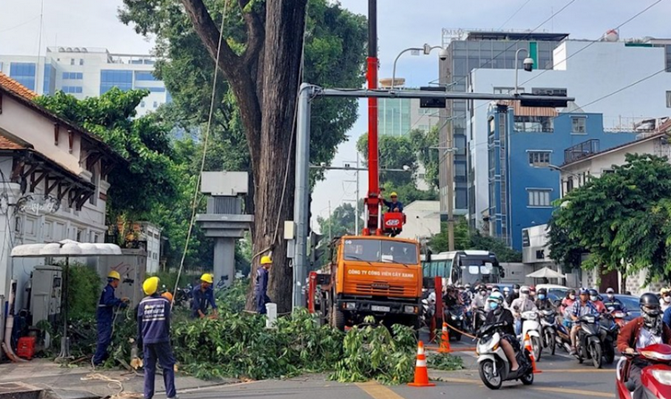 TP.HCM tổ chức cắt tỉa cây xanh trước mùa mưa bão. (Ảnh: VM).